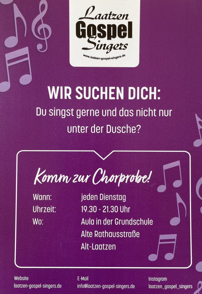Du liebst Gospelmusik und hast Lust, selbst mitzusingen? Wir freuen uns immer über neue Stimmen – aktuell suchen wir vor allem Bässe, aber auch andere interessierte Sänger*innen möglichst mit Gesangserfahrung sind herzlich willkommen. Meldet Euch einfach bei uns und macht eine Probe mit!